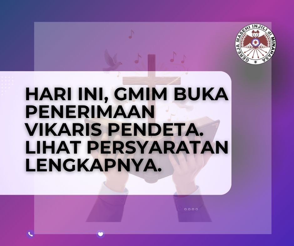 DODOKUGMIM – Sinode Gereja Masehi Injili di Minahasa (GMIM) resmi membuka penerimaan vikaris pendeta, Jumat (17/10/2025). Pendaftaran akan ditutup pada 31 Oktober 2025. Semua berkas persyaratan dimasukkan secara daring melalui https://sivi.gmim.info/login