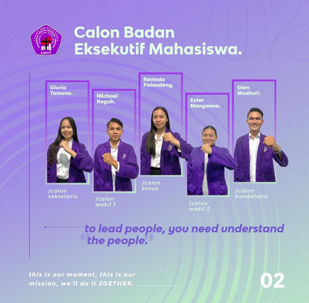 Revinda Palandeng, paslon nomor urut 2 resmi jabat ketua BEM UKIT periode 2021-2022 ganti Plt. Ketua BEM 2020-2021 Theogive Palandeng usai unggul dengan perolehan 587 suara. Sedangkan, untuk DPM turut dimenangi oleh pasangan nomor urut 2, Koresy Tumbelaka dengan total 687 suara ganti Plt. DPM 2020-2021 Olivia Putri Malunto.